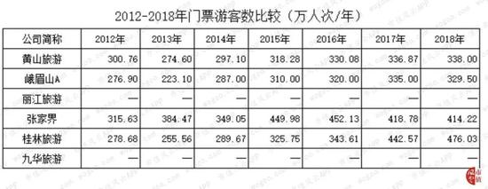 来源:根据上市公司年报数据整理,注,张家界门票游客数据仅包括环保客运和宝峰湖,桂林旅游包括两江四湖、银子岩、丰鱼岩、龙胜温泉、贺州温泉、资江丹霞景区、丹霞温泉等景区;丽江旅游、九华旅游为披露相关数据