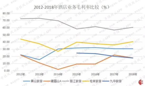 通过比较发现,酒店业务中丽江旅游的毛利率最高,其次是桂林旅游,黄山旅游排第三,九华旅游和峨眉山的酒店业务毛利率较低。