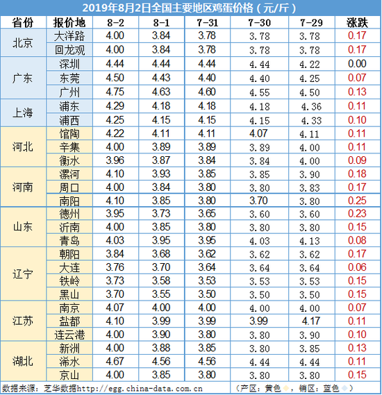 今日全国蛋价继续上涨。主销区北京大洋路到车6台,走货快,已售罄,涨;上海涨;广东到车量正常,偏强。主产区山东、河南涨;东北涨;南方涨。