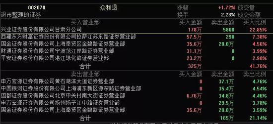 更为明显的案例是目前已经退出场内交易的众和退。7月4日,银河证券上海浦东新区源深路营业部以35万元的卖出金额位列众和退龙虎榜卖出榜单,不过7月5日,众和退大涨10%,7月6日再度大涨,这笔卖单显然是对众和退至老三板前景不明朗心存谨慎,不过从短期股价表现来看,也确实买在了这家问题公司股价的最低点区间之内。