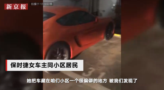 原标题:保时捷女车主未将车停回小区车位 居民称附近人都怕她