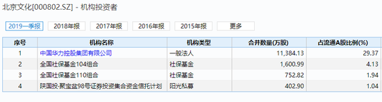 例如,在《我不是药神》上映之前,即2018年二季度,有社保基金104组合、陕西信托、社保基金110组合及多家公募基金持有该股,而2018年三季报显示,仅余上述社保基金和陕西信托持有该股,公募基金已不在机构投资列表。2018年年报,又出现40只公募基金持有北京文化,而2019年一季报显示,所有公募基金再次消失。