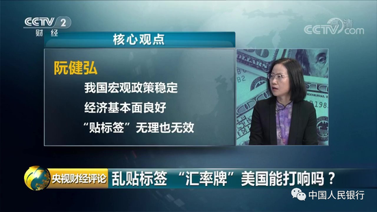 2019年8月8日,中国人民银行调查统计司司长兼新闻发言人阮健弘和国家外汇管理局总经济师兼新闻发言人王春英做客《央视财经评论》栏目,阐释汇率、货币政策、国际收支和外汇管理等热点问题。