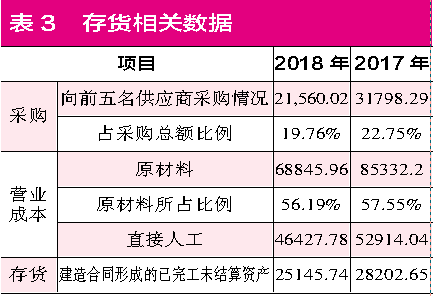 此外,弘高创意还披露了营业成本的构成,其中,2018年原材料金额为6.88亿元,占营业成本比例56.19%。由此占比可大概推算出当年库存中减少部分大概有1717.68万元的金额为原材料。