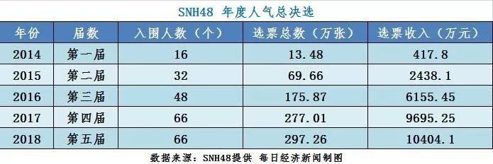 这意味着,6年时间,仅靠粉丝在“总决选”上的专属投票唱片选票投票,SNH48 GROUP就为丝芭传媒累计贡献逾4亿元的收入。