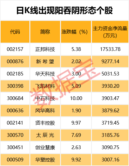 截至8月1日收盘,两市共有62只个股日K线出现阳吞阴形态,当天中石科技、贤丰控股、蓝丰生化均以涨停收盘。
