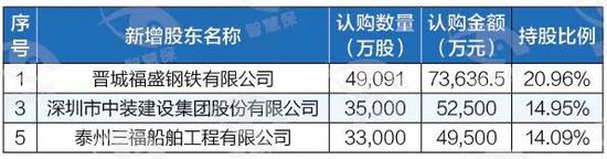 股东大会审议并通过议案,同意按照每股1.5元的价格,由晋城福盛钢铁有限公司认购4.91亿股,深圳市中装建设集团股份有限公司认购3.5亿股,福州三福船舶工程有限公司认购3.3亿股。增资完成后,昆仑健康保险注册资本将变更为23.42亿元。