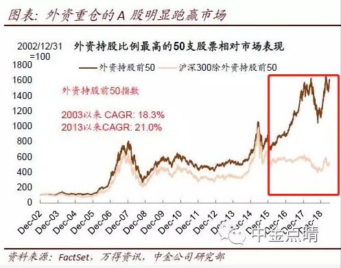 国盛证券认为,本轮核心资产的上涨,核心驱动力是增量资金推动,而外资是最重要的边际增量。从相关性来看,外资的入场节奏在很大程度上决定了核心资产的超额收益。因此,外资的持仓可以作为核心资产的重要参考。